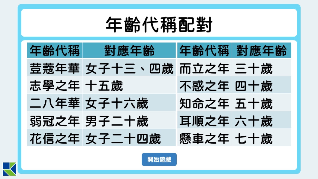 年齡代稱配對
